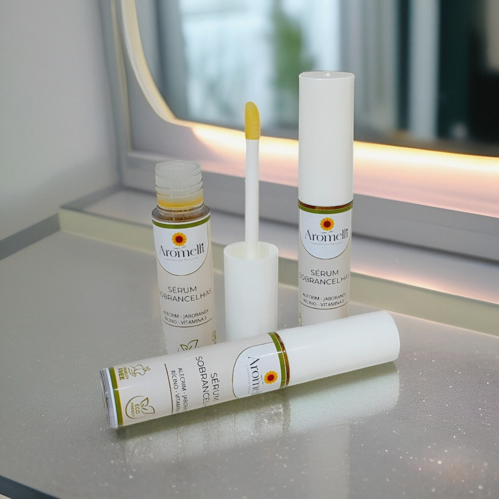 Realce a beleza natural do seu olhar com o Sérum para Sobrancelhas Aromelli, uma fórmula 100% vegetal, natural, vegana e eco-friendly, desenvolvida para nutrir, fortalecer e estimular o crescimento saudável dos fios.