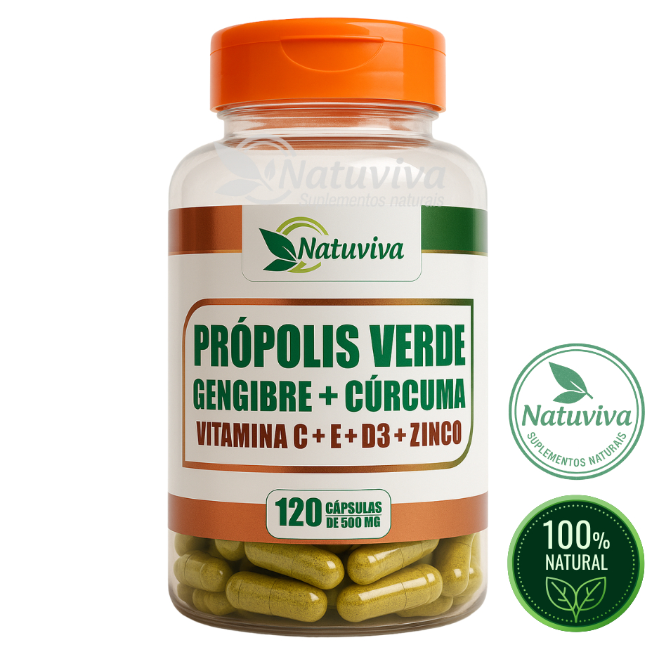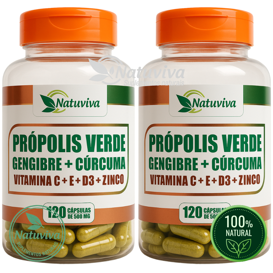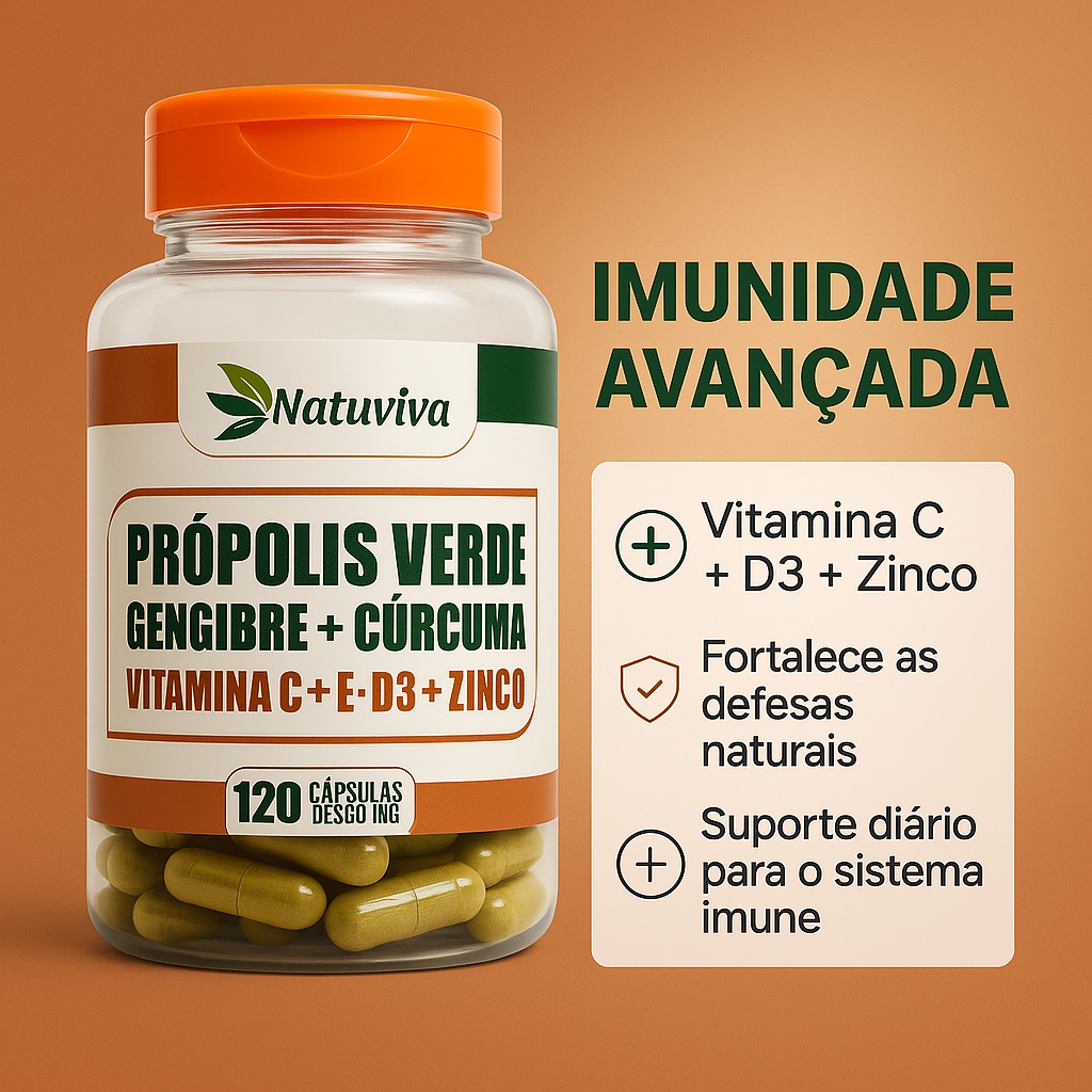 Natuviva Própolis Verde + Gengibre + Cúrcuma + Vitaminas C, D3, E e Zinco – 120 Cápsulas | Imunidade e Proteção Avançada