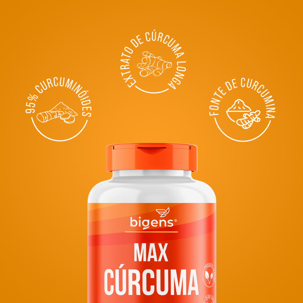 Max Cúrcuma Bigens traz todos os benefícios da Cúrcuma de uma maneira mais biodisponível. É um extrato hidrossolúvel otimizado e padronizado de Curcuma longa 95% curcuminóides, por isso, possui maior biodisponibilidade, bem como maior solubilidade em água. Por ser cerca de 9 vezes mais biodisponível do que a cúrcuma comum, há a possibilidade de redução da dose diária, facilitando assim o seu consumo.